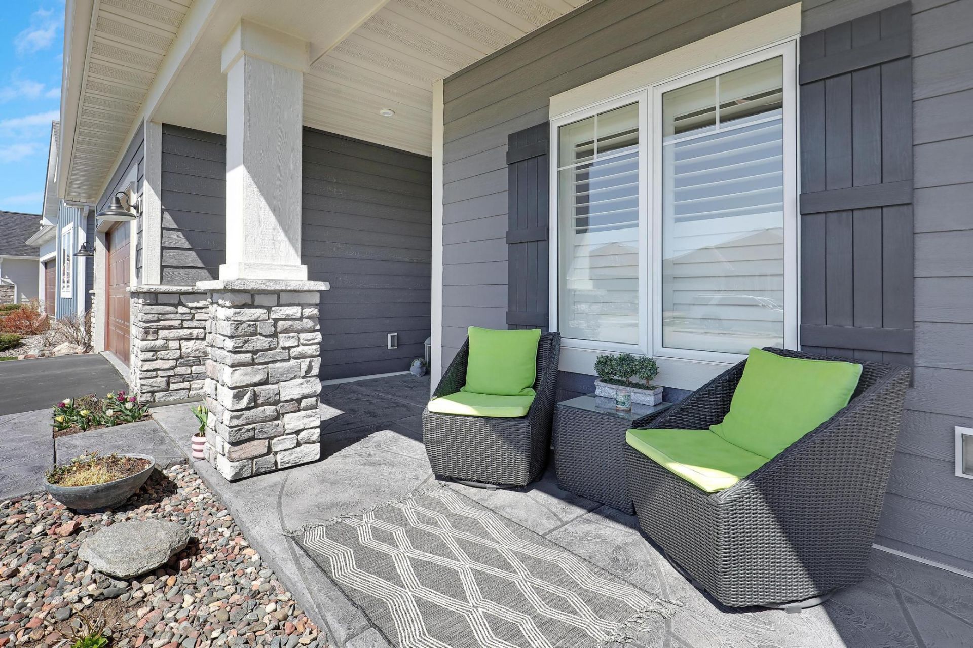Immaculate one-level detached townhome built in 2021, offering a rare combination of modern design,quality upgrades, and low-maintenance living. This 2-bedroom, 2-bath home is in pristine condition andtruly shows better than new construction.The open and functional layout includes a bright sunroom, spacious living areas, and a well-appointedkitchen designed for everyday comfort and entertaining. The primary suite features a private bath and thoughtfully designed storage.Enjoy outdoor living with a covered front porch and a private back patio overlooking a beautifullymaintained garden. The insulated and heated 3-stall garage-with a tandem third stall-has been fullyfinished with epoxy flooring, creating a clean and versatile space.Additional upgrades include LP siding, window shutters, and custom closet organizers, adding bothand functionality throughout.styleMove-in ready and meticulously maintained-this home offers effortless one-level living at its finest.