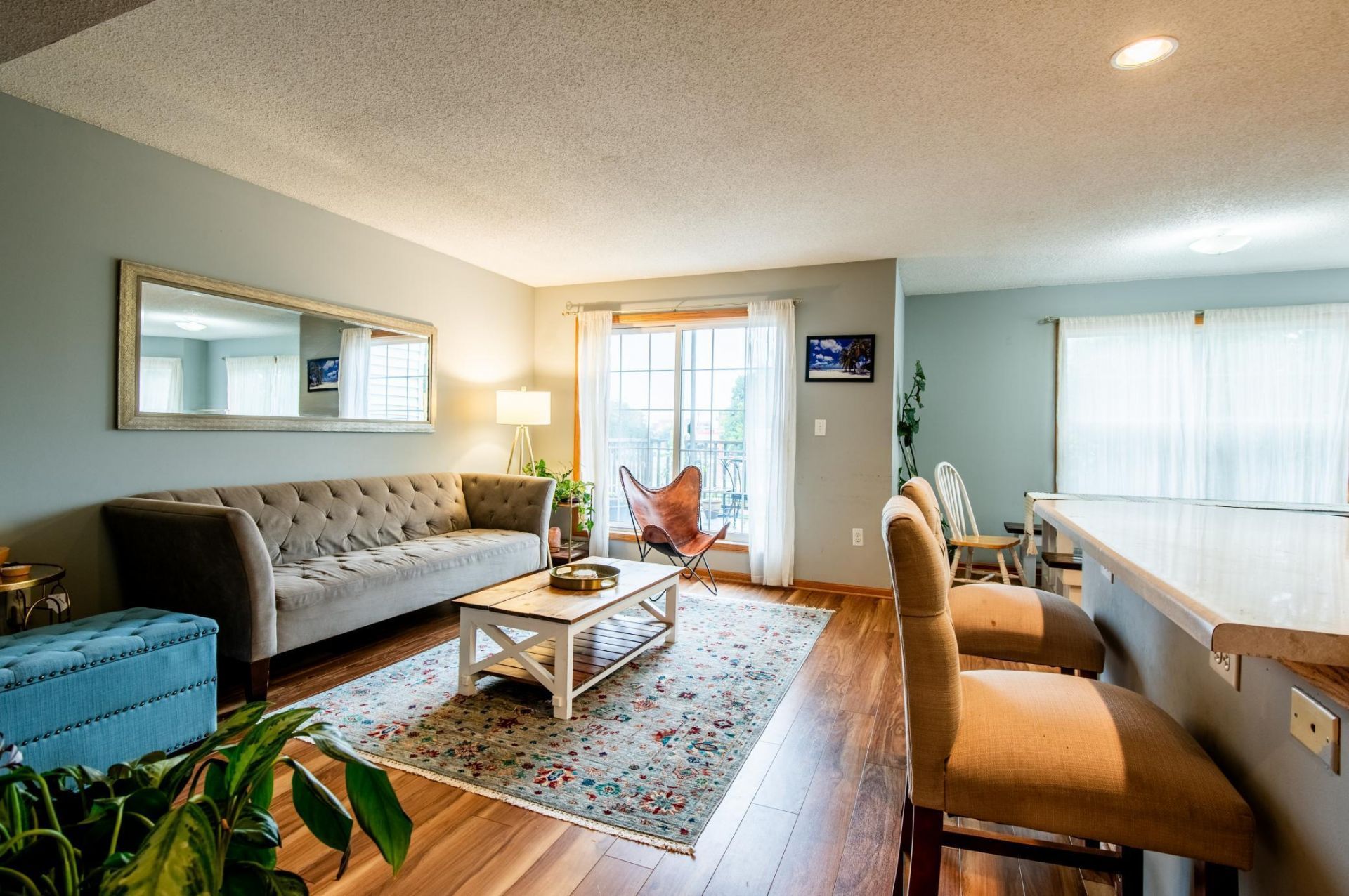 Beautiful townhome? Perfect for owner-occupied residence, or great for investment opportunity--rental allowed. Recently updated with a stylish electric fireplace and fresh interior paint. This charming end-unit features 3 bedrooms and 2 bathrooms, along with a spacious, open-concept main living area that includes a breakfast bar, abundant natural light, and patio doors leading to a private deck. The generously sized primary bedroom offers a bay window and walk-in closet, while the second bedroom provides additional comfort and flexibility. Enjoy the convenience of upper-level laundry with built-in shelving, as well as a main-level den or office space. Additional highlights include a double-car garage and a newly installed washer and dryer. Ideally located near shopping centers and with easy freeway access. The buyers and their Agent to verify all measurements. One year HOME WARRANTY INCLUDED.